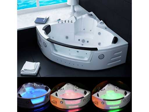 Type: LF3816-150. Waterjets: 12 whirlpool jets - 14 Airbubble jets. Power: 220-240V, 50/60HZ. Equipped with: Heater - 8pcs exterior lighting - Underwater lighting - Ozone disinfection - FM radio - Control panel - 2 speakers - Waterfall - Overflow protection - Thermostatic faucet - Hand shower - 2 Pillows