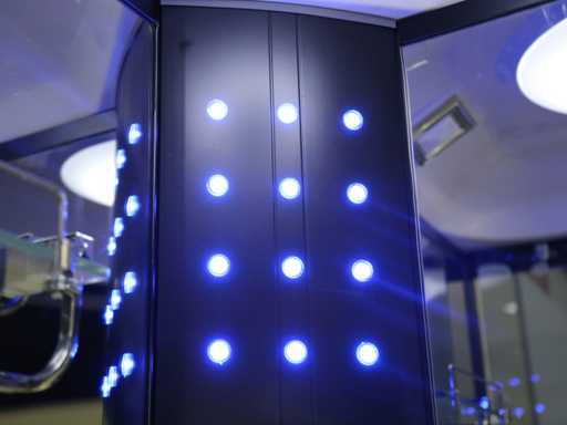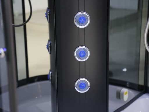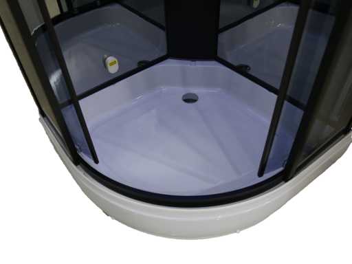 Type: SC2506. Model: Half-round steam room, sliding doors. Jets: 6 water jets for a pleasant back massage. Equipped with: Sliding doors, rain shower in the ceiling, digital control panel, corner shower panel, mood lighting in the shower column, lighting around the rain shower, FM radio with speaker, possibility to connect a telephone, CD connection, ozone disinfection, adjustable legs, non-slip bottom, fan, hand shower, chair. Total weight 91.5 kg in four cartons.