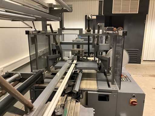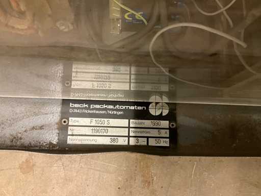 Film packaging machine with shrink tunnel, Beck B260/55 infeed belt adjustable in width, Beck F1050S film machine, Beck film shrink tunnel, temperature adjustable