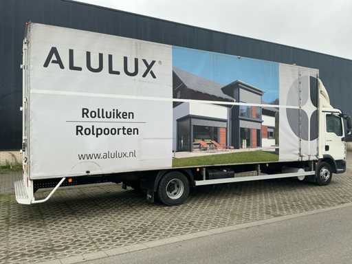 Equipped with: MAN TGL 12.180 4×2 with diesel engine, 180 hp, wheelbase BL, permissible gross vehicle weight 11,990 kg, permissible gross combination weight 15,490 kg, axle loads 4,400 kg (front) and 8,400 kg (rear), EU type approval, VIN WMA15ZZ4Y1974447, suitable for distribution and superstructure up to approx. 10 meters in length. Sail construction with a steel construction with compartments (see photos) All around camera system.