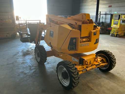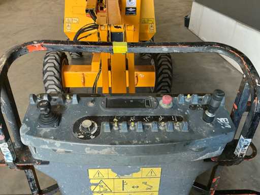 Equipped with: 4wd, 2ws, Kubota D1105 3 cylinder diesel, travel drive diesel, working height 12.30m, reach 6.10m, lifting capacity 230 kg, own weight 4.450, platform dimensions (lxw) 1.52 x 0.76 m, transport dimensions (lxwxh) 5.52 x 1.93 x 2 m, max. working tray height 10.30 m, max. Work bucket range 6.10m, number of people 2, horn, hour meter, hydrostatic drive, lifting/securing eyes, load detection system, oscillating axle, platform console, proportional control, folding engine box, solid rubber tires.