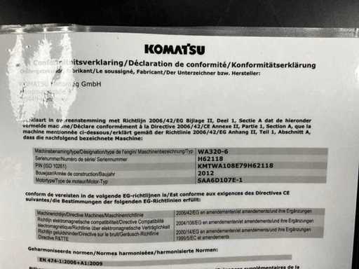 2012 Komatsu WA320-6 Wheel Loader