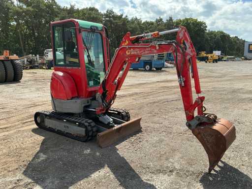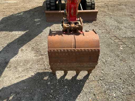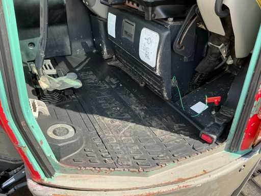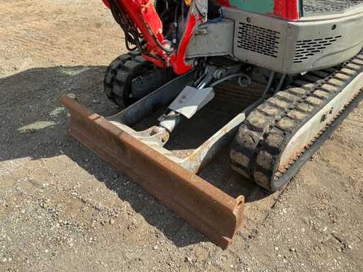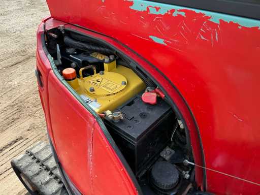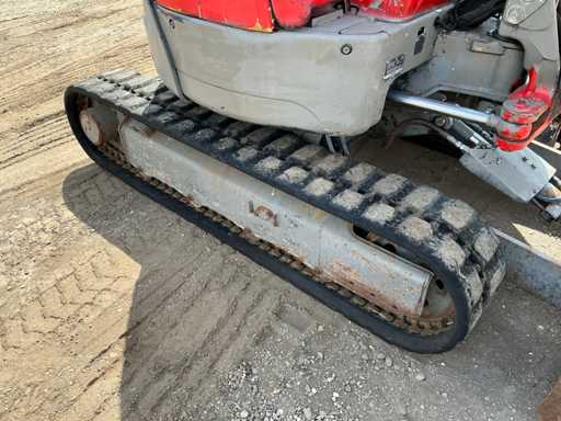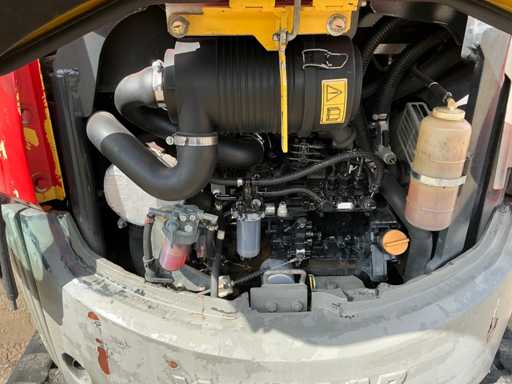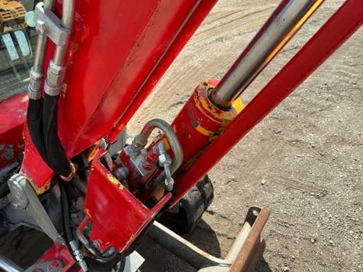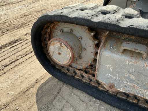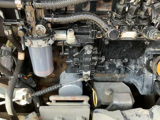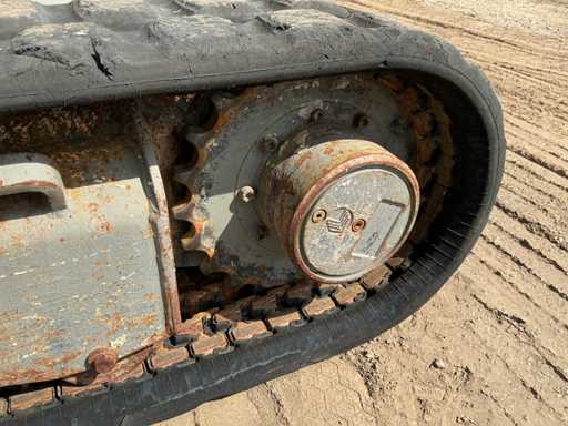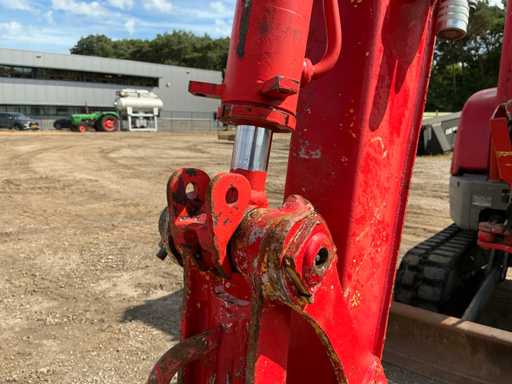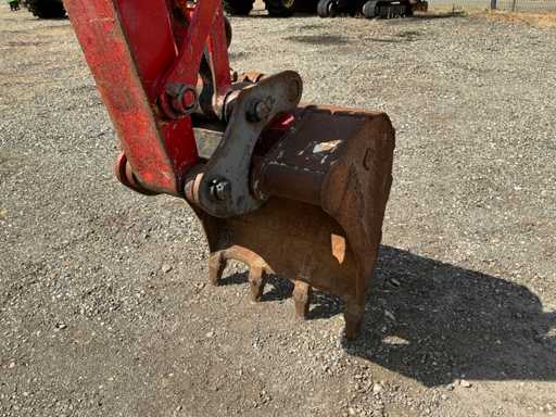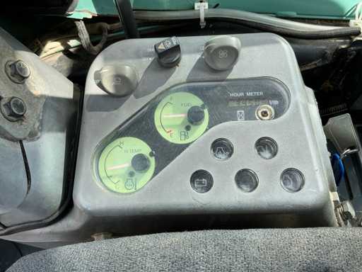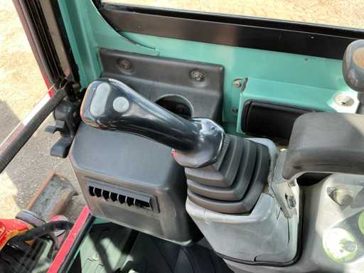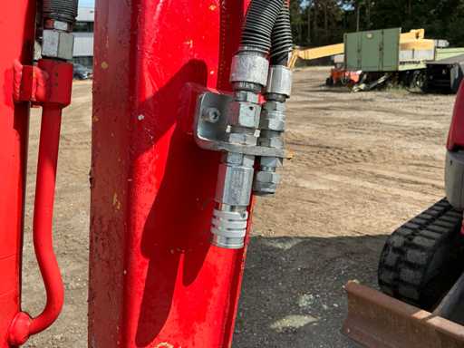 Equipped with: tine tray 580mm, mechanical quick coupler, dozer blade, l+R of spoon handle aux. connections, immobilizer, heat resistant tinted glass, integrated work lights, cylinder protection (boom, arm, bucket, blade), ROPS/FOPS cab, joystick control, armrests, sliding seat, travel levers and pedals.