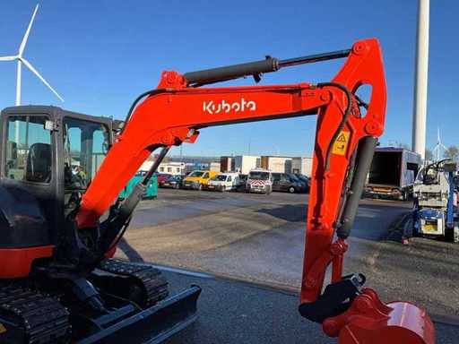 Backhoe with teeth 700mm, mechanical quick coupler, extra hydraulic function, sliding blade, swing boom, steel tracks with rubber pads, 2nd travel speed, Auto Idle