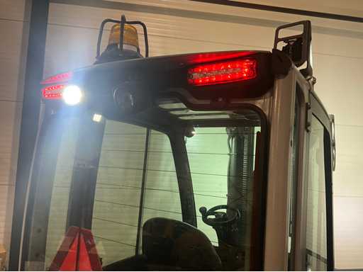 Extra options: Battery from 2021, very neat machine !! , fully enclosed cab , LED lighting front and rear , LED daytime running lights , blue spot front and rear , unused spoons , radio , heating , joy stick , interior lighting , electric handbrake , beacon , warning triangle