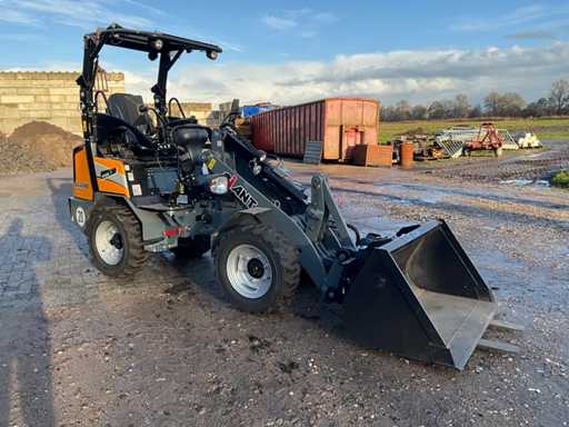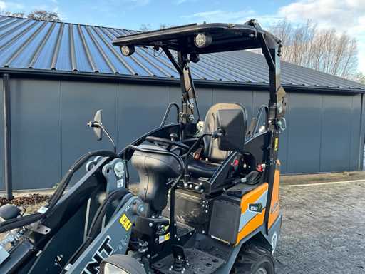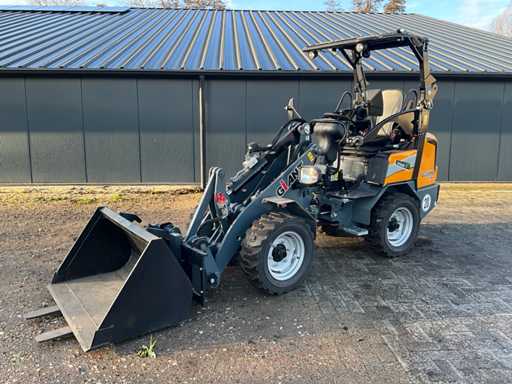 Equipped with 3-Cil. "Kubota" Diesel engine; hydraulic quick coupler; hydraulic auxiliary function; Pallet fork (PV-2A-1000-G) ; ground bucket 1200mm (GRB-1200); work lighting; foldable roll bar;