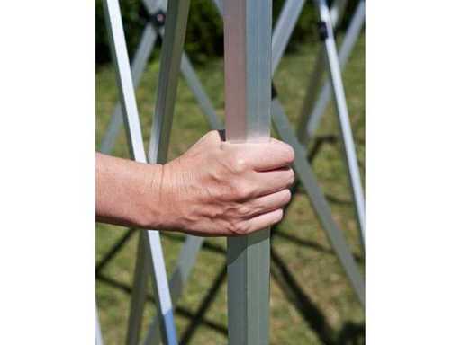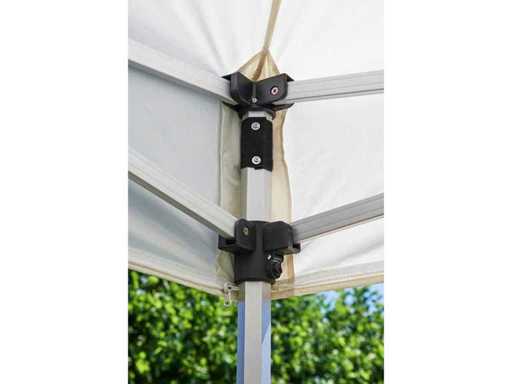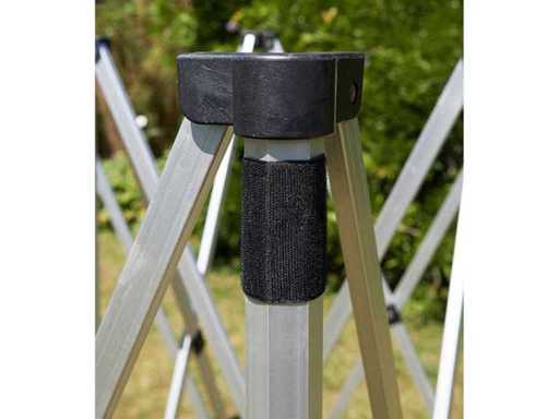 This premium aluminium pop-up gazebo is perfect for events, parties and trade shows and is easy to carry thanks to its light weight. The tent can be completely closed all around with the four included sidewalls.