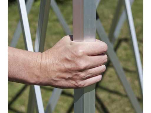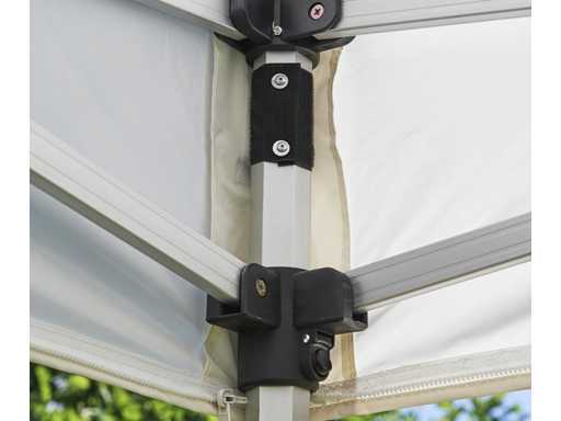 This premium aluminium pop-up gazebo is perfect for events, parties and trade shows and is easy to carry thanks to its light weight. The tent can be completely closed off by six included black sidewalls, three of which have a window, one with a door and two blank sidewalls.