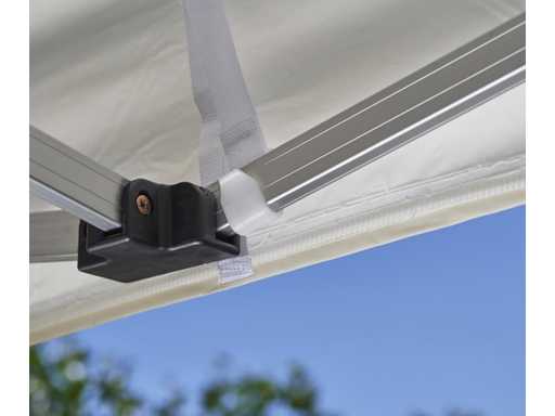 Quick to set up without any prior knowledge thanks to the sturdy hexagonal aluminum frame and durable nylon connectors. Includes waterproof top cover and side walls made of high-quality polyester with PVC coating, as well as a carrying bag for the frame. New and in the original, unopened packaging.