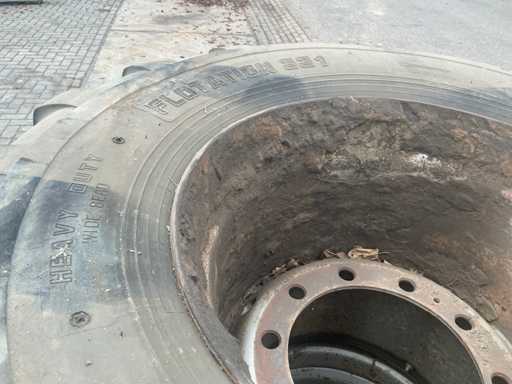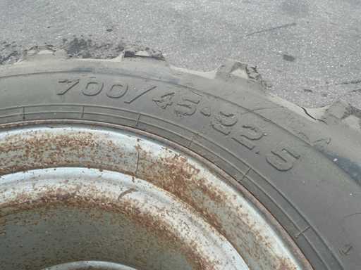 700/45-22.5 Tire set on 10 hole rim for excavator