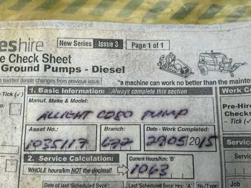 Equipped with: hour counter, tachometer, main switch, frame with recess for pallet forks, emergency stop, DN125 / 5" connection, Perking diesl,