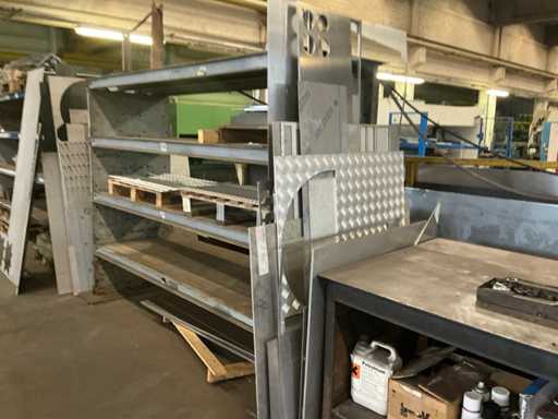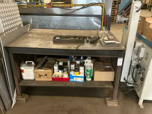 Includes: metal workbench (90x130x90cm) and steel rack (60x 260x 200cm)