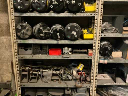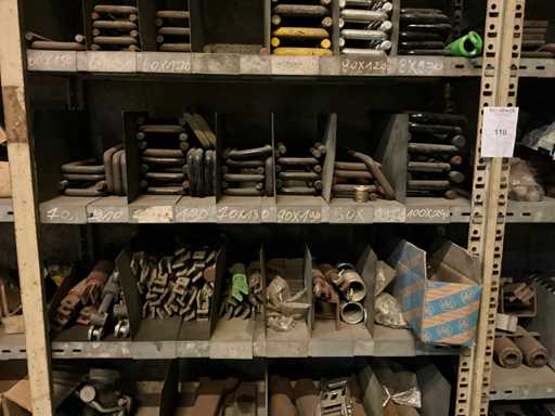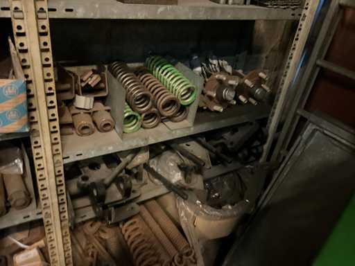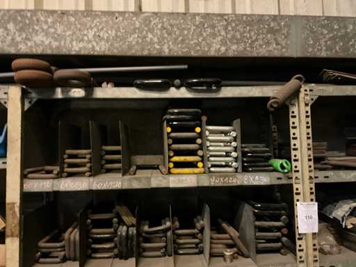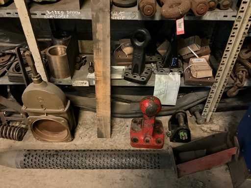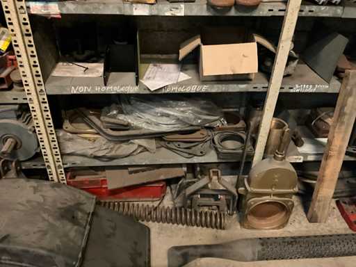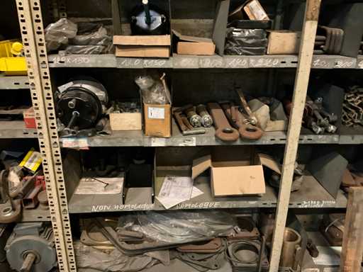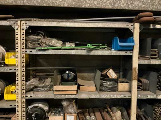 Consisting of shelf rack with all its contents including springs, tow bars, spring package holders, brake pots, mudguards, as well as contents of 2 pallets