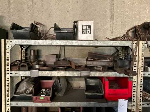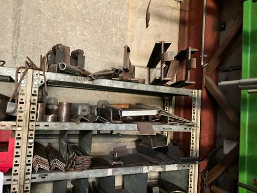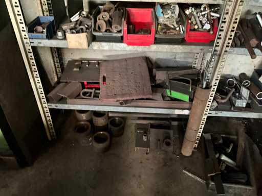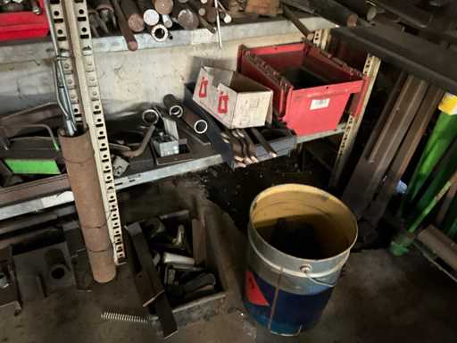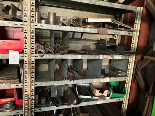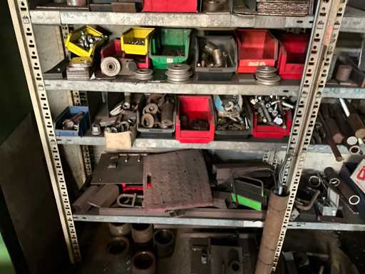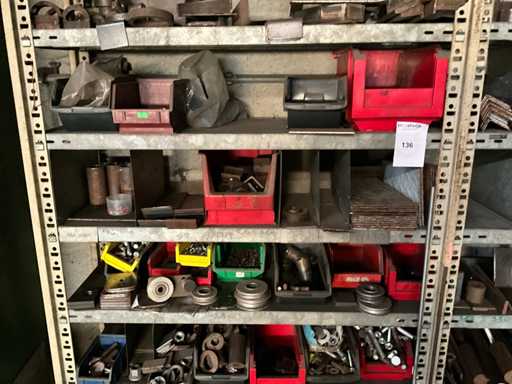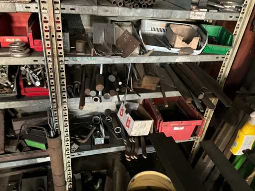Consisting of shelf racking with all content including pulleys, axles, semi-finished products