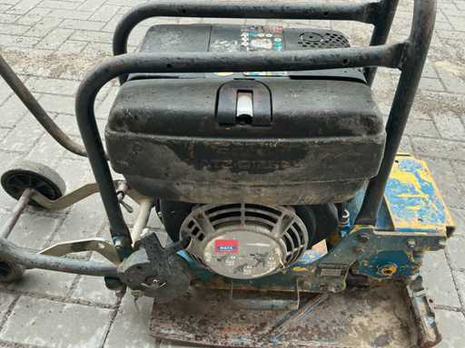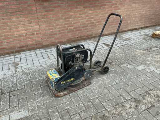 Equipped with: Wheel set, pull cord start, protection bracket with lifting eye, one-way vibration plate, working width of 400 mm, vibration frequency approximately 100 Hz.