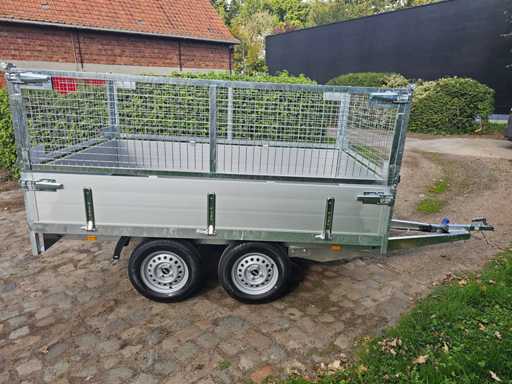 New unbraked platform trailer with superstructure wire net 65 cm BW Trailers 250 x 150 / Hot dip galvanized chassis / wire net 65 cm / 2 ALKO axles / 13 pin plug / Lashing brackets in cargo box / With Coc certificate / drivable with B driving license