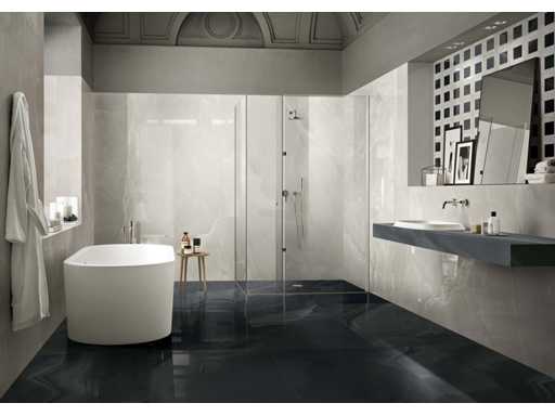 Tile Luxury Onyx White glossy 60x120cm rectified, 86.4m2, 9mm thickness, made in Italy, ceramic floor and wall tile, frost and scratch resistant, 2 pallets 80x120cm, approx. weight 1720kg