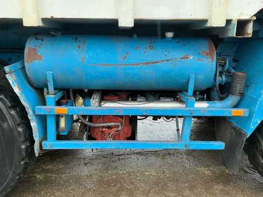 Equipped with: steered rear axle, interchangeable tipper and tank, drawbar coupling, agricultural registration, leaf springs, work lights, tank on legs (on top of filler-vent pipe, aflsuiters/cranes, double-walled)
