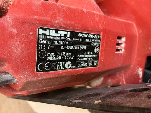 - SCW 22-A circular saw Ø165mm, with 2x21.6V battery & charger, s/n 068707