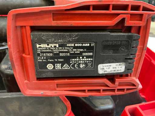 - HDE 500-A22 chemical injection gun, with 1x21.6V battery & charger, s/n 006566