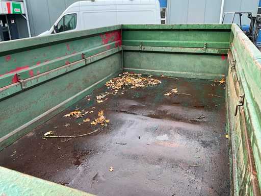 Container size: approx. 340x190x85 cm (lxwxh); foot slide; ring towbar; hydraulically tippable,