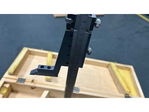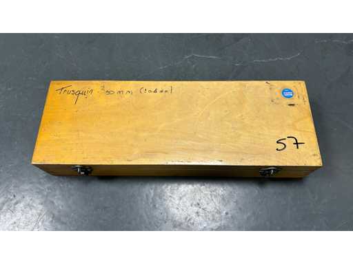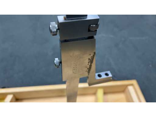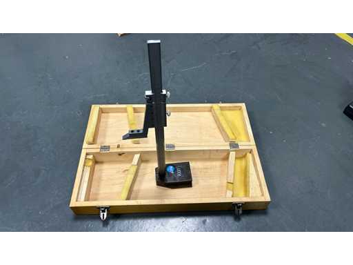 Black cast iron base • Accuracy 0.02 mm • Vertical stroke 300 mm • Wooden case • Metrology instrument for heights and depths.
