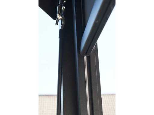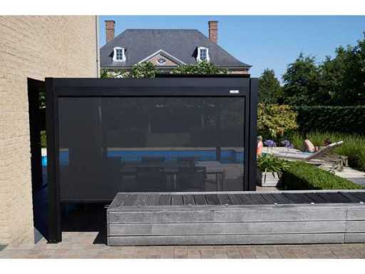 windproof ZIP screen (blinds) offers protection against wind, sun or rain (and insects); fits on patio roof with louvered roof LUXE; top quality, weighs 45kg (or more); high-quality aluminum; black textured powder coating (granule); stainless steel/stainless steel allen screws