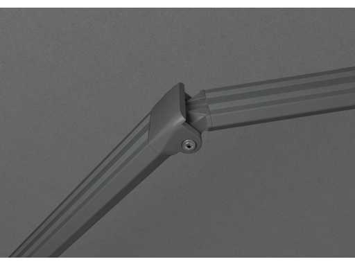 The frame is made of strong and durable aluminum and the sunshade is made of 280 g/m² polyester. The fabric is waterproof and has a UV resistance of UV50+. Easy to operate with a crank. Very easy assembly