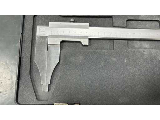 Hardened stainless steel • Precision 0.02 mm • Stroke 0–300 mm • Wide nozzles 5.5 mm • Rigid case internal ref. M10057.