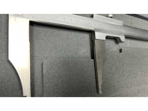 Deep spouts • Accuracy: 0.02 mm • Hardened stainless steel • Metrology verified 13/11/2017 • Hard case • Large capacity instrument.