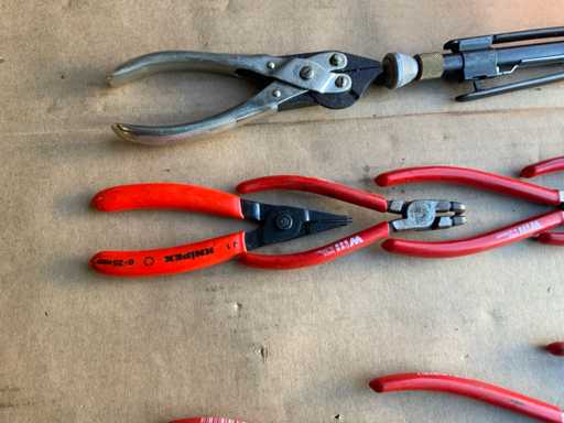 Outer / inner circlip pliers ; parallel pliers Meuw ; locking wire twisting pliers Sandvik/Belzer