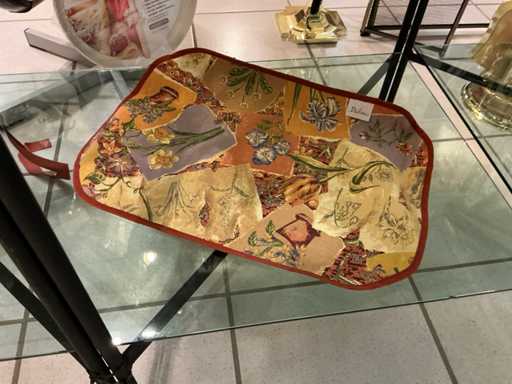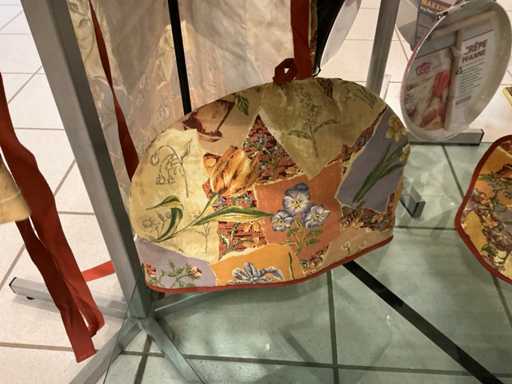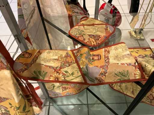 Waaronder keukenschort, ovenwanten, flessenkoeler, stoffen tray, picnicdoek,…