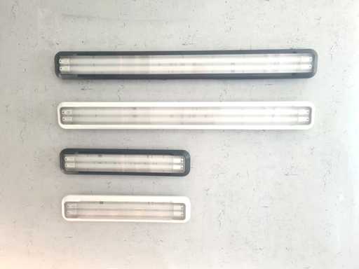 IP65 waterdicht, product kleur donkergrijs, afm. 1289 x 138 x 84mm, materiaal PC & ijzer reflector, bevestigingsset inclusief, twee T8 Tube invoer, LED TL Tube niet inbegrepen, voltage 220-240V, een zijde L N aansluiting, max 36 watt, Attentie verkeerd informatie over product kleur op de dozen, compatibel met 120cm TL buizen, SKU 00653