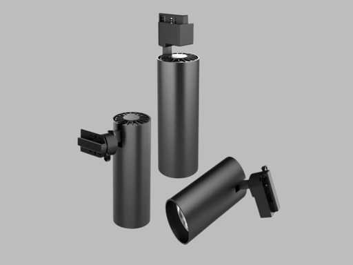 lichtstroom 1800 lumen, lichtkleur naturaal wit 4000K, stralingshoek 24°, geschikt voor 1 fase 2 draad rail, afdichting IP20, product kleur zand zwart, afm. Ø 63 x 145mm, draaibaar 350° en kantelbaar 90°, materiaal aluminum kop en PC basis, levensduur 30.000 uren, geschikt voor binnen, voltage 220-240V, rail niet inclusief, SKU 1125