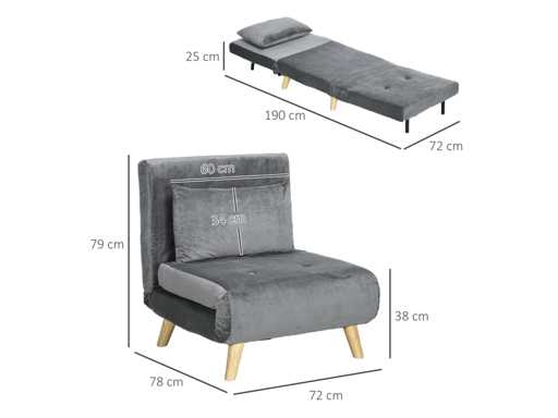 2-in-1, relaxstoel, uitklapbed - grijs