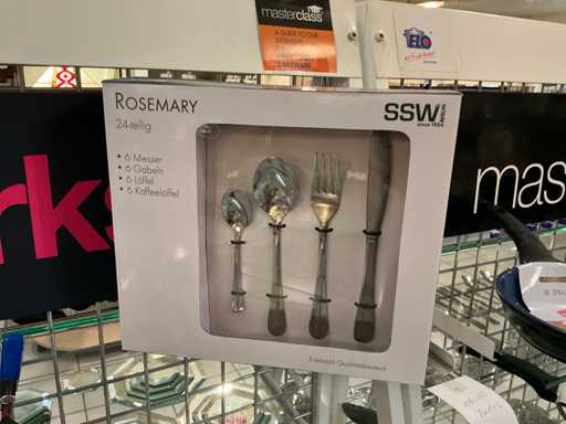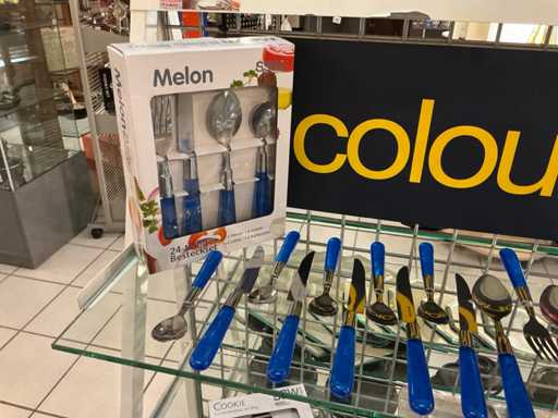 Waaronder 2x 24 delig bestek voor 6 personen,steakmessenset, koksmessenset, taartset met schep en taartvorkjes...