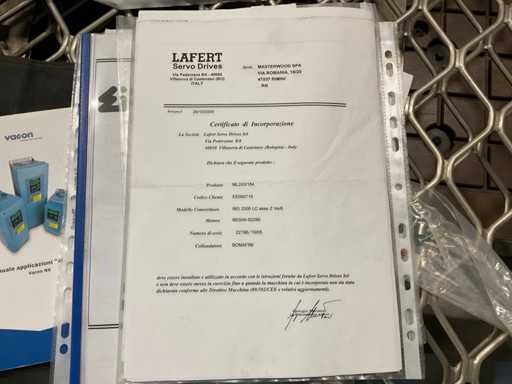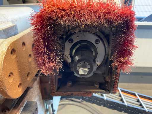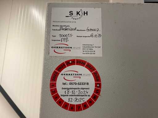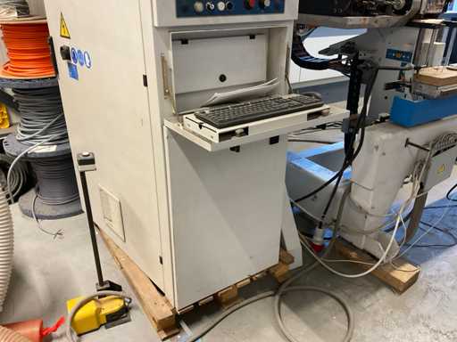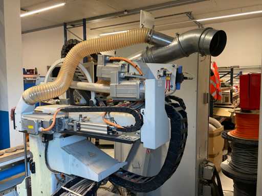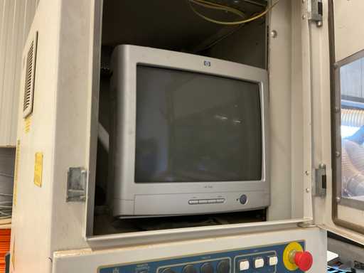 werkend gedemonteerd, laatste inspectie uitgevoerd op 18-12-2024 (volgende inspectie: 12-2025), voorzien van: documentatie, pneumatische werkstrukklemmen, afzuig aansluiting, aanstuur unit met monitor, voetbediening