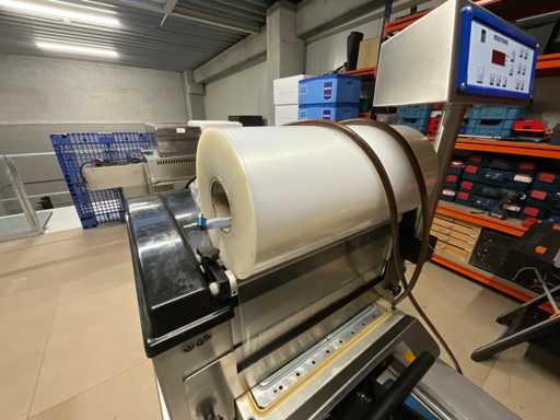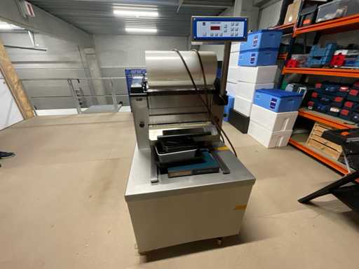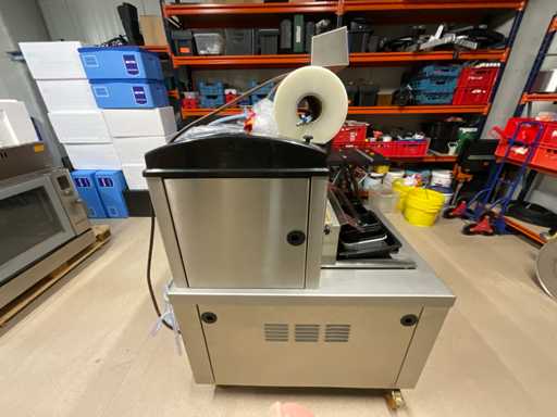 Professionele warmtedichtmachine voor het verpakken van voedseltrays. Robuust en betrouwbaar model, geschikt voor productiewerkplaatsen, cateraars, industriële keukens of kleine verpakkingslijnen.