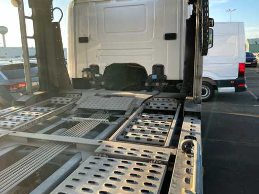 Deze Scania 410 auto-transporteur is uitgerust met een Rolfo Pegasus opbouw en is geschikt voor professioneel vervoer van meerdere voertuigen. De combinatie biedt een goede balans tussen laadcapaciteit, betrouwbaarheid en flexibiliteit.