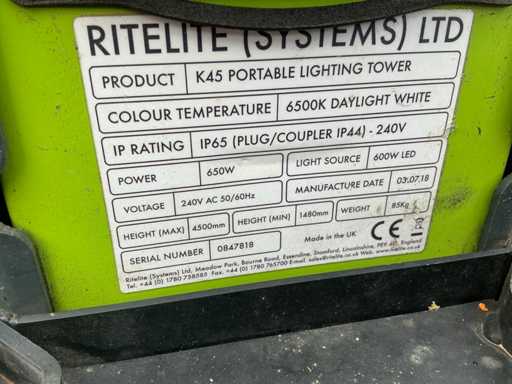 2018 Ritel K45 360 Bouwlamp