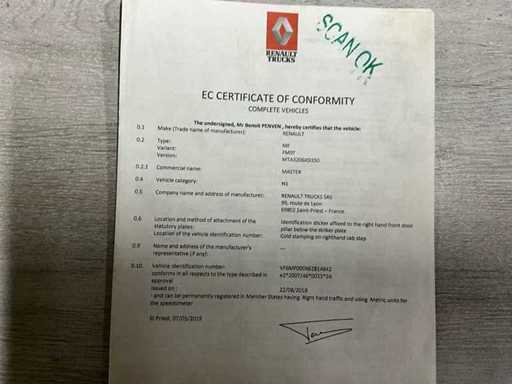 2019 Renault Master lichte vracht - Euro 6b (niet publiceren, sleutel kwijt)
