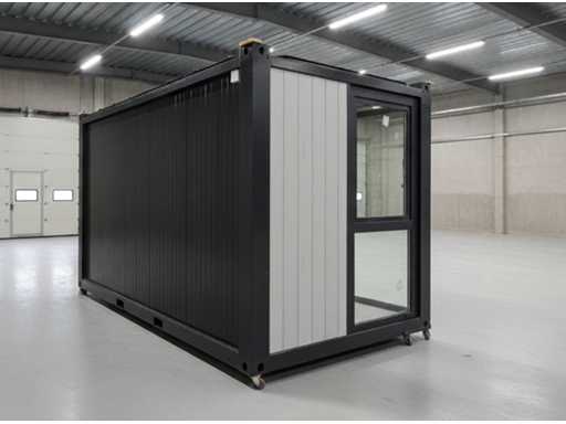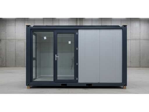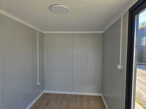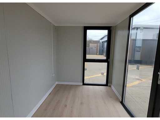 Sandwichpaneel gevelbekleding; Interieur, 50mm geïsoleerde wanden, vloer & dak; Vloer, laminaatparket; Wanden, sandwichpaneel; Plafond, gepleisterd & gipsplaat; Ramen, Deceuninck