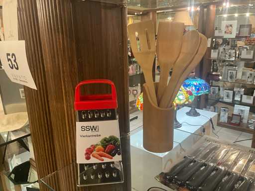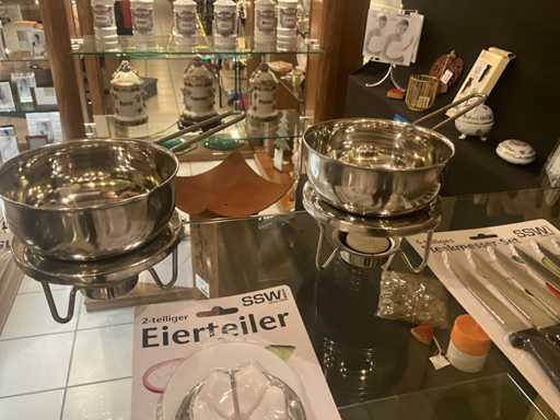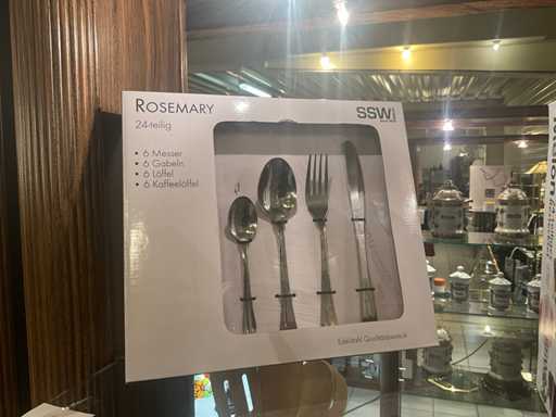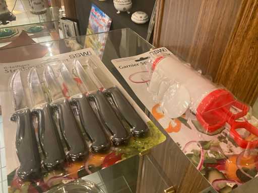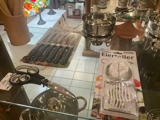 waaronder 3 x 24 dlg bestek voor 6 personen en diverse keukenaccessoires waaronder steaksets, eiersnijder, sauswarmers, scharenset...