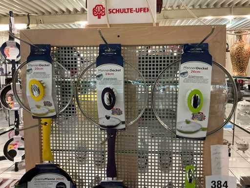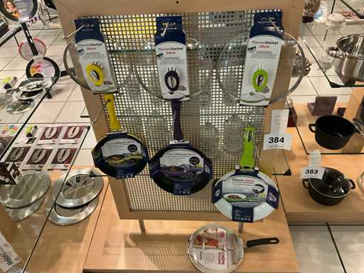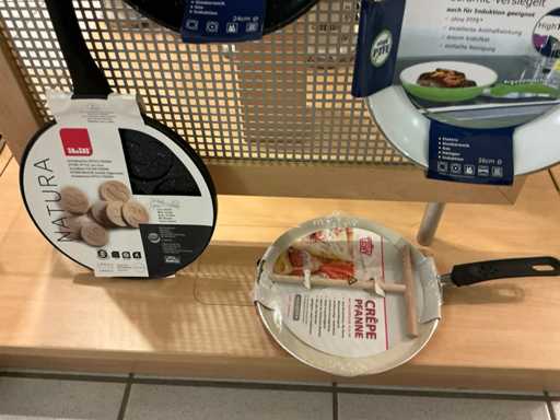 Waaronder 3x braadpan diameters 20-24 26 cm met passend gekleurd deksel, 1x pannenkoekenpan met verdeler, 1 x blinis/pannekoekenpan Ibili