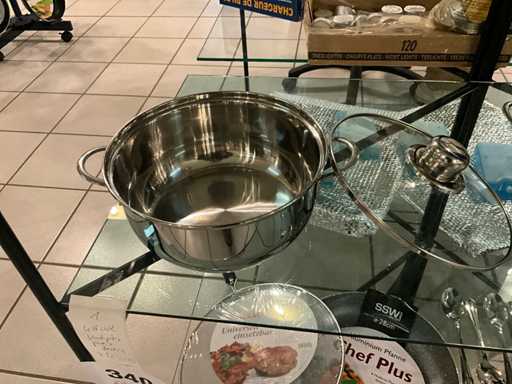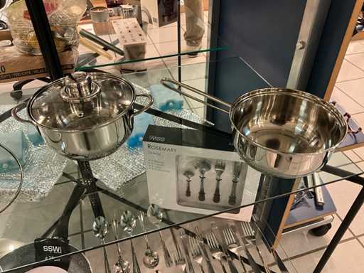 Inox kookpotten in diverse afmetingen compleet met 24 delig bestek voor 6 personen SSW en pan Ssw met bijhorend antispatdeksel...