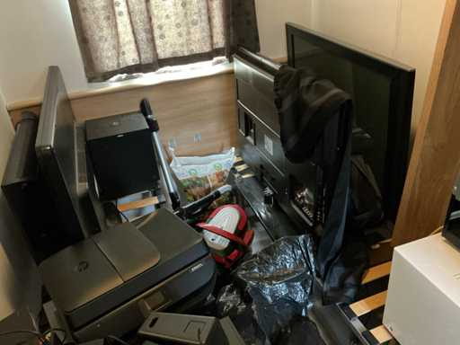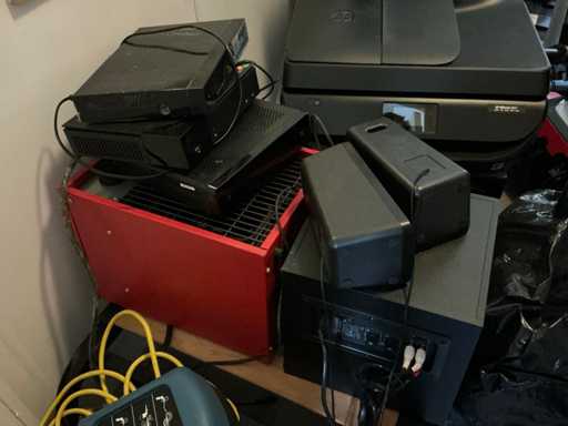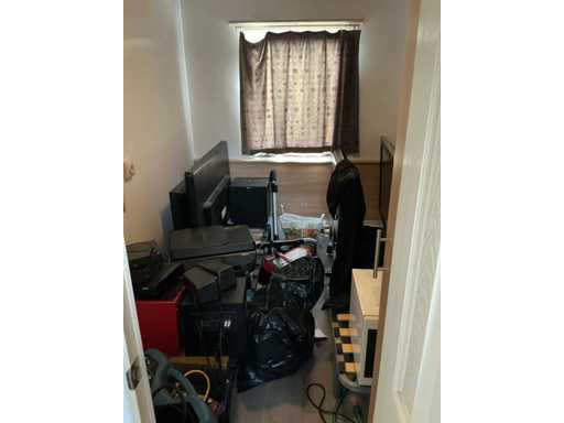 1 bergruimte inhoudende partij diverse electro waaronder 4 diverse televisietoestellen waaronder 42” SAMSUNG plasma display en PHILIPS, 1 All-In-One printer HP OfficeJet 4657, 1 luidspreker LOGITECH THX Subwoofer, 1 luidspreker TRUST Subwoofer voorzien van 2 satelliet luidsprekers OXT, 1 elektrische bijverwarming SENCYS 3.3 kW, 1 satellietontvanger VIZYON, 2 diverse routers waaronder getekend PROXIMUS en MOBISTAR, 1 microgolfoven, 1 draagbare lucht compressor TOPCRAFT TCK-181, 1 stofzuiger ROWENTA, 1 minibar koelkast INTERTEK CR-40 A en 2 eenpersoons lattenbodems voorzien van metalen frame zonder matras. Inhoud bergruimte onder voorlopige toewijzing, mogelijks eigendom derden.