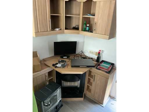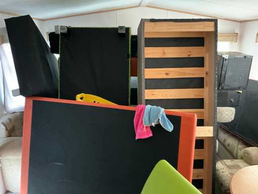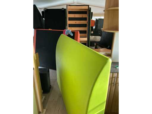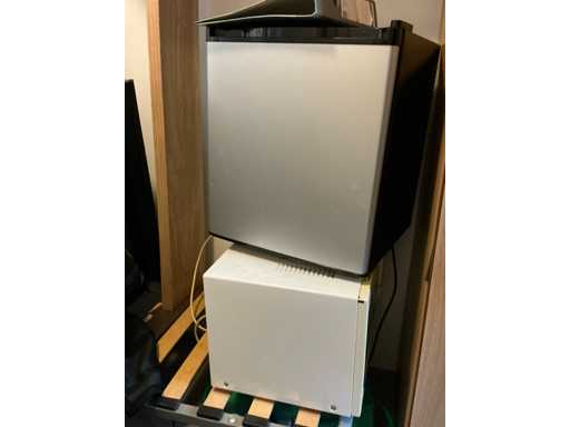 Leefruimte inhoudende gedemonteerde zithoek en diverse zitbanken, 1 minibar koelkast INTERTEK CR-40 A,