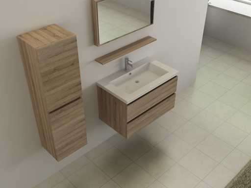 Type: BL5165-M030. De badmeubelset bestaat uit: 1 * Wastafelmeubel - 800x470x480mm, 1 * Zijkast - 1500x350x350mm, 1 * Spiegel - 800x450x60mm, 1 * Planchet - 800x120x15mm. Voorzien van: Kraan inclusief pop-up drain - Softclose lade systeem - Giethars wasbak - Voorgemonteerde zijkast en wastafelmeubel.