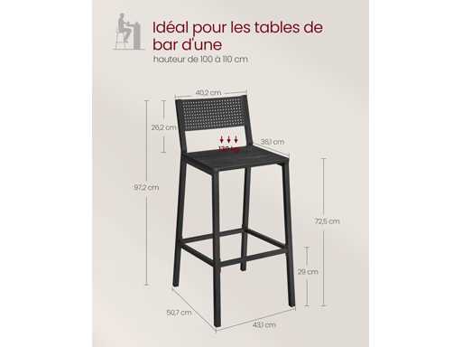 Afmetingen van elke kruk: 39 x 39 x 100 cm (L x W x H)