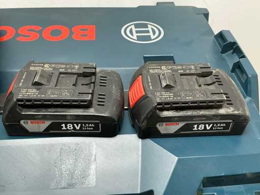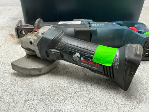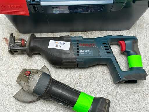 Bestaande uit: een 2014 Bosch GWS 18V-Li Haakse slijper 125mm accu 18V-LI, een 2019 Bosch GSA 18V-Li Reciprozaag accu 18V-LI, 2 18V 1,5 Ah accu’s en een acculader.